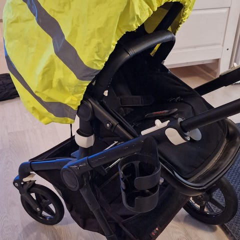 Lisävarusteina tulee Bugaboon oma ratasosan Seat Liner istuinsuoja sekä sadesuoja (muu merkki).