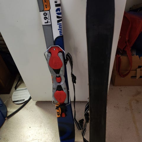 Elan Lil Spice hyvässä kunnossa olevat laskettelusukset ja monot. Sauvat saa kaupan päälle. Yhteensä kaikki 110 €.