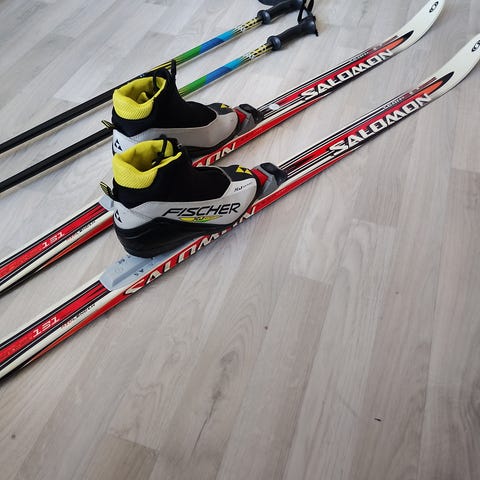 Rossignol X Tour R-Skin -maastohiihtosetti, johon kuuluu pitokarvalla varustetut perinteisen tyylin sukset, siteet sekä sauvat ja monot. Suksissa on R-Skin -karvapohja, joka tarjoaa pitopinnan ilman voitelua. Setti soveltuu perinteisen hiihtotavan harrastajalle. Kengän koko 35.