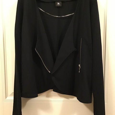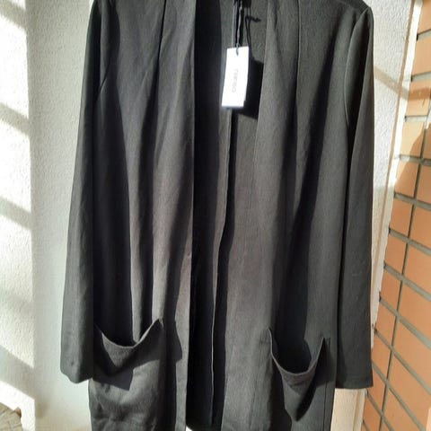 Joustava ja pehmeä jakku, edessä taskut. Edessä napitus. Vähän "lötkö" rakenne, mukava päällä. Ei vuoria.