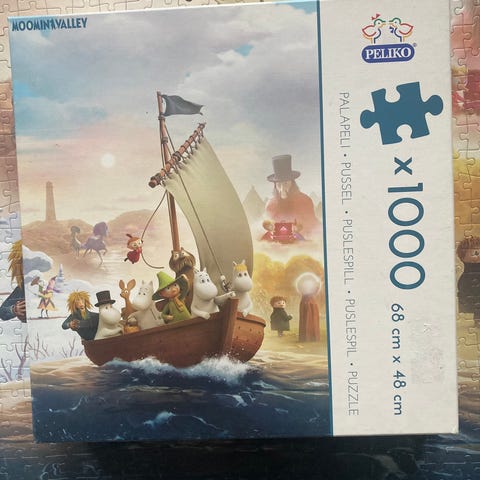 Myydään hauska Muumiaiheinen 1000 palan palapeli, hyväkuntoinen, kaikki palat tallessa, pussitettu