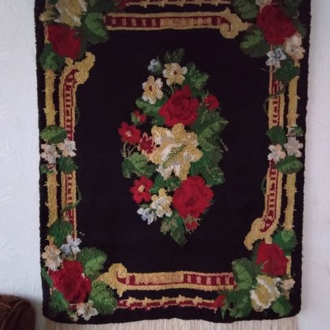 Musta ryijy, jossa ruusukuva.