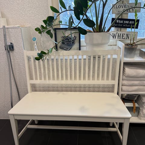 Ikean valkoinen Hemnes-sarjan penkki. Siistissä kunnossa ja tukeva.