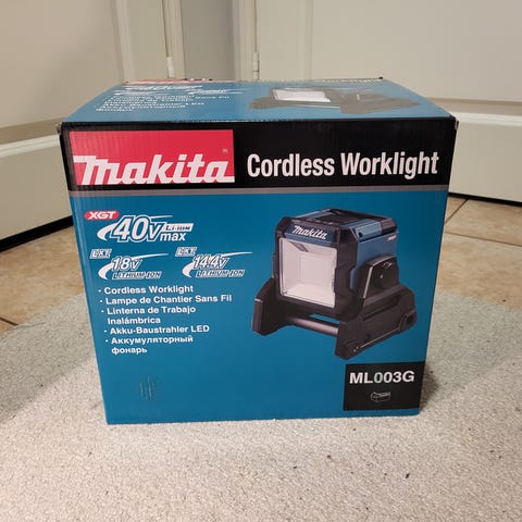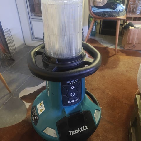 Makitan työvalo 18V akulla tai verkkovirralla. Ollut käytössä vessarempassa noin 2 tuntia.