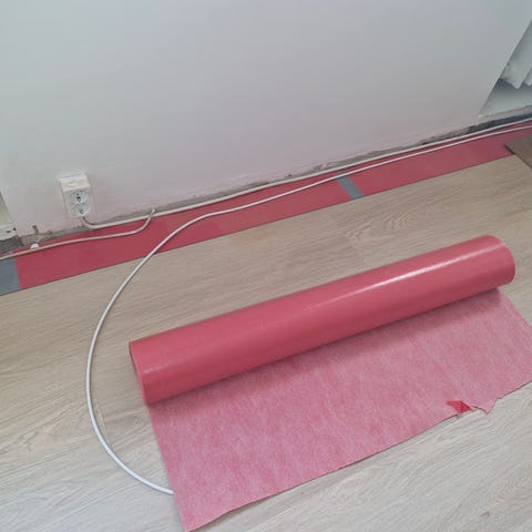 Hieman vajaa rulla lattian alusmuovia, täysi rulla halk n 20cm, jäljellä n 18cm. Tarkemmat tiedot https://www.stark-suomi.fi/tuote/vinyylin-ja-laminaatin-alusmuovi-raw-1-mm-1-1x25-m-27-5-m2-36fc