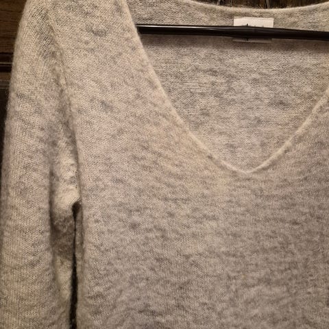 Hihansuissa ja helmassa kivat rullatut reunat. Kevyt ja ilmava neulos.