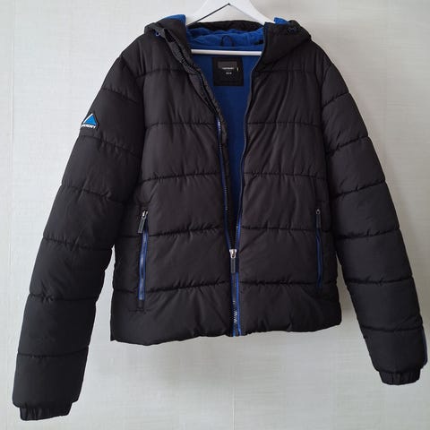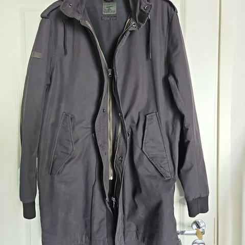 Miesten takki, hupullinen. Vetskarit toimii, myös taskujen. Naakka.