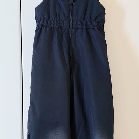 Hyvässä kunnossa kaikin puolin. Ei reikiä eikä kuluneita polvia. Lahkeissa lumisuojat.