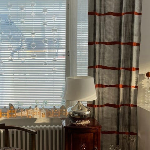 Aikoinaan Eurokankaasta ostetusta jämäkästä puuvillakankaasta valmistetut paneeliverhot, 2 kpl, mitat noin 240 x 60. Voin tarkan mitan ottaa kun löydän mittanauhan.