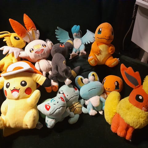 Sisältää 6 figuuria: Bulbasaur x2, Eevee, Sneasel, Rowlet ja Pikachu (puissa).