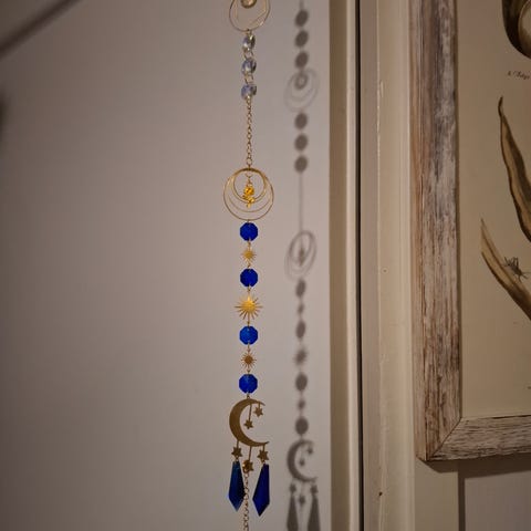 Aurinkosieppari ikkunaan roikkumaan aurinkoiselle puolelle ja aurinko heijastaa pieniä valopilkkuja seiniin ja kattoon kristalleista, maksu käteinen tai mobile pay