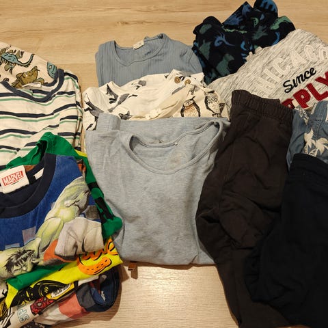 Ihana ja kirjava vaatepaketti pojalle 122-128 cm, 18 kappaletta.