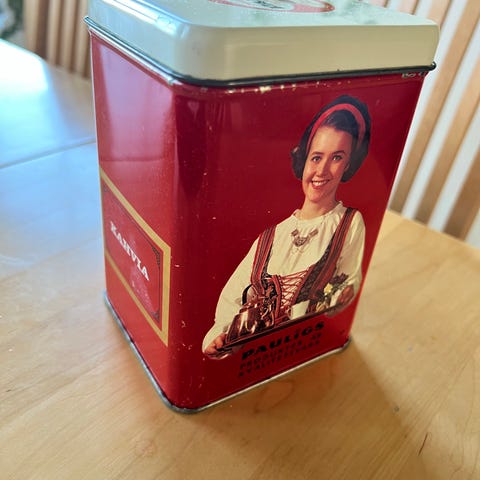 Aarikka Riemuraita peltipurkki punavalkoinen