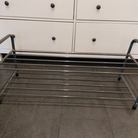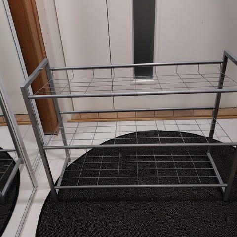 Kuvien mukainen, puinen kenkäteline ja pukeutumispenkki. Pinnassa joitain jälkiä, jotka pestävissä tai maalattavissa piiloon.
