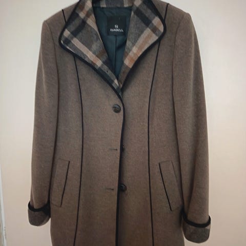 Vanha takki joka hiukan nukkaantunut ja muutama nappi ommeltu uudelleen.
