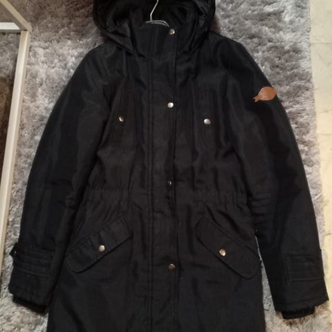 Talvitakki, koko S. Väri musta ja materiaali polyesteriä. Takissa on etutaskut ja huppu. Sopii naisten käyttöön viileämpiin säihin ulkotakiksi.