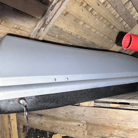 Myydään ehjä ja hyväkuntoinen suksiboksi. Kuvissa boksi on hieman pölyinen, mutta muuten siisti. Boksissa ei ole lukkoa paikallaan.