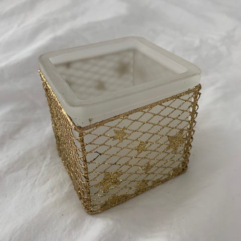 Lasista valmistettu kauniin mallinen tuikkulyhty. Tässä on ollut tuoksukynttilä, joka on palanut loppuun. On putsattu hyvin, ja sopii hyvin lämpökynttilälle. Väri pellava / luonnonvalkoinen. Pohjassa mustalla painettu pieni teksti / numerosarja, joka ei kuitenkaan juuri erotu mihinkään. Halkaisija n. 6,5 cm, pohjan halkaisija n. 7,5 cm ja korkeus n. 7,5 cm. On todella siistissä kunnossa. Hinta 2€. Nouto Espoo (esim. Kauklahti / Lippulaiva. Voin myös postittaa, jolloin postituskulut lisätään hintaan. Tori-diili tai tavalliset kaupat.