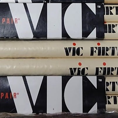 Kolme paria uusia Vic Firth 5A kapuloita. Thomann ovh 14,30 eur pari ni 30 euroa näistä kolmesta on reilu ja ostaja jää plussalle ToriDiilin jälkeenkin.