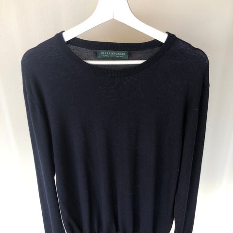Herrainpukimo miesten neulepaita koossa L. Materiaalina merinovilla. Väri on punainen, sävyltään viininpunainen. Malli on pitkähihainen, pyöreällä pääntiellä ja resoreilla helmassa sekä hihansuissa. Soveltuu käytettäväksi esimerkiksi arkipukeutumisessa ja kerrospukeutumisessa viileämpiin säihin.