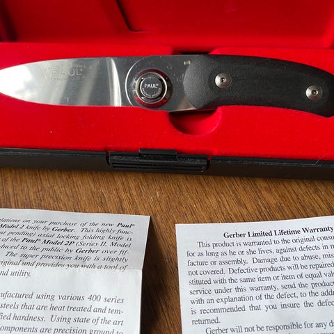 Lukitusrenkaassa lukee nro9 virobloc brevete. Lukitusrengas lukitsee vain auki asentoon eli vanhempaa tuotantoa. Terän voin puhdistaa jos ostaja haluaa. Taittoveitsi linkkuveitsi