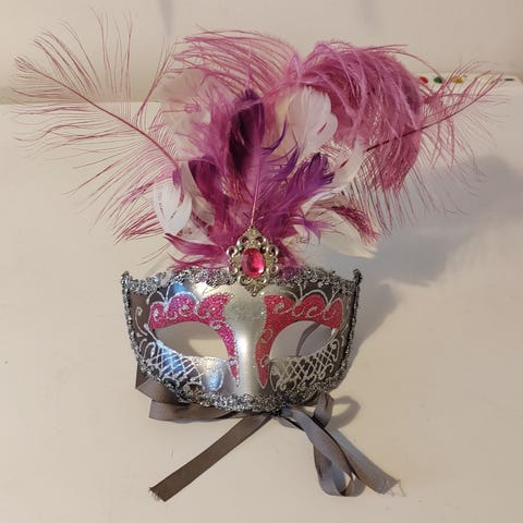 Venetsialainen karnevaali naamio. Punaisia/kultaisia yksityiskohtia.