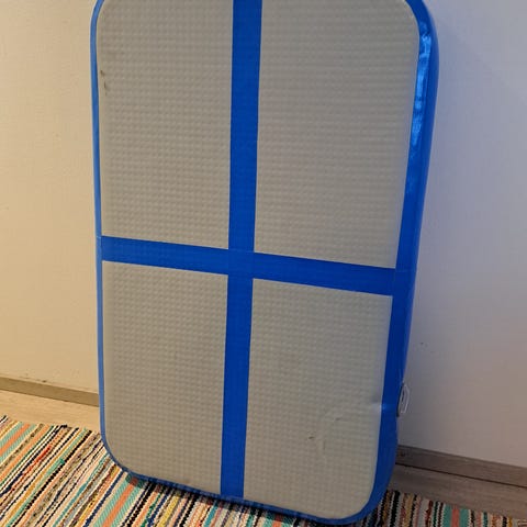 Myydän muuton vuoksi,viimekesänä ostettu airtrack koko 300x100x10. Todella vähällä käytöllä ollut. Mukaan tulee jalka ilmapumppu.kantokahvallinen säilytyslaukku,jossa patja on helppo säilyttää ja kuljettaa. Paikkaustarvikkeet myös mukaan. Sisäkäytössä ollut, siisti temppu ja hyppypatja. Tilattu Ruotsista eli kesti ennenkuin saapui Suomeen. Oikea luxus malli. VAIN NOPEA NOUTO,koska postitus ei onnostu. Kestää aikuisenkin tehdä temppuja. Ei pitkiä varailuja eikä ohareiden tekijälle.