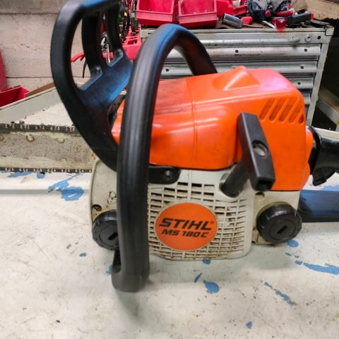 Toimiva saha jossa on aito Stihl ms250 moottori uudella tarvikemännällä.