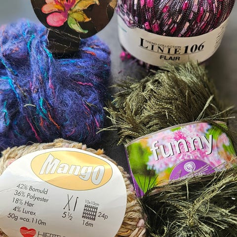 Hobbygarn- ja Järbo-merkkinen akryylilanka lankasetti. Kerät ovat noin 50 g ja pituus noin 90–100 m / kerä. Materiaali on pääosin tai kokonaan akryyliä. Värit sinisen ja violetin sävyjä sekä kirkkaanpunainen. Sopii neulontaan ja virkkaukseen, esimerkiksi asusteisiin ja sisustustekstiileihin. Pesuohjeet ja puikkosuositukset löytyvät vyötteistä, osa langoista on konepestäviä.