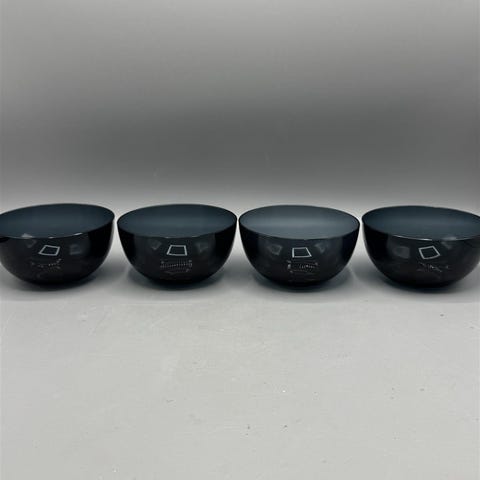 Tummalasinen Nuutajärven lasin valmistama minimalistinen kannu, jossa on kaatonokka ja kahva. Malli 5601, design Kaj Franck. Kannun pinta on hieman kulunut ja siinä on pieniä naarmuja.