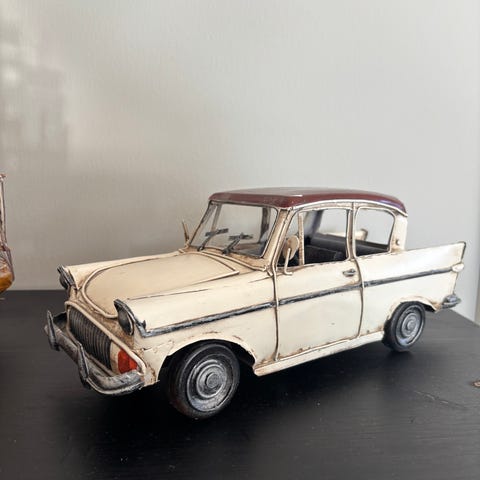 Oxford Ford Anglia 105E pienoismalli. Auton väri on sininen ja se on pakattu läpinäkyvään esittelykoteloon. Sopii keräilyyn tai koristeeksi. Mittakaava ei käy ilmi kuvista, mutta kyseessä on pieni valmiiksi koottu malli.