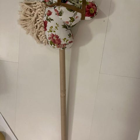 Ihana itse valmistettu keppihevonen. Keppari on valmistettu beigestä fleece kankaasta, silmät sekä sieraimet ovat tekonahkaa ja harjassa on käytetty beigeä villalankaa.
