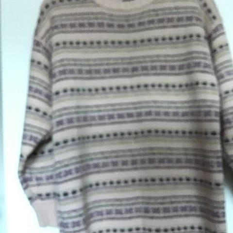 Katri Niskasen malliston villapusero. Materiaali 100 % villaa. Lapussa koko L, mutta mielestäni parempi koolle M.