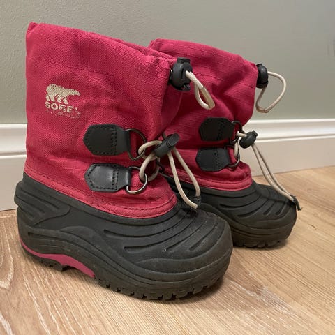 Myydään yhdellä lapsella hetken aikaa käytössä olleet Sorell loskarit kokoa 24. Kengät ovat todella hyvässä kunnossa.