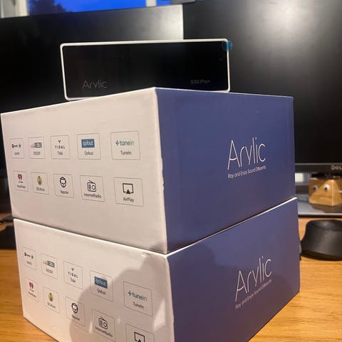 Myydään kaksi kappaletta käyttämättömiä Arylicin pieniä langattomia striimereitä-esivahvisimia monipuolisilla ominaisuuksilla, mm.WiFi, Bluetooth 5.0, DLNA, Airplay, NAS, HighRes suoratoisto.