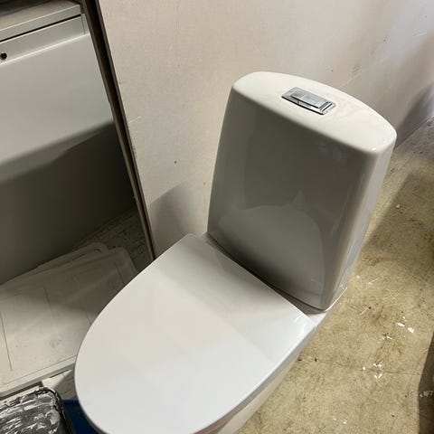 Valkoinen lattialle asennettava WC-istuin. Kaksitoiminen huuhtelupainike sijaitsee säiliön päällä. Sopii asennettavaksi kylpyhuoneeseen tai WC-tilaan tavanomaisella viemäröinnillä. Materiaali on lasitettua keramiikkaa tai vastaavaa kovaa saniteettiposliinia. Soveltuu yleiseen kotitalouskäyttöön.