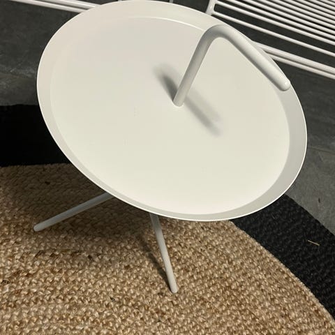 Erinomaisessa kunnossa oleva valkoinen Hayn Loop stand -sarjan ruokapöytä. Halkaisija 105cm, kolme metallijalkaa, jotka kiinni toisissaan( kts kuva)