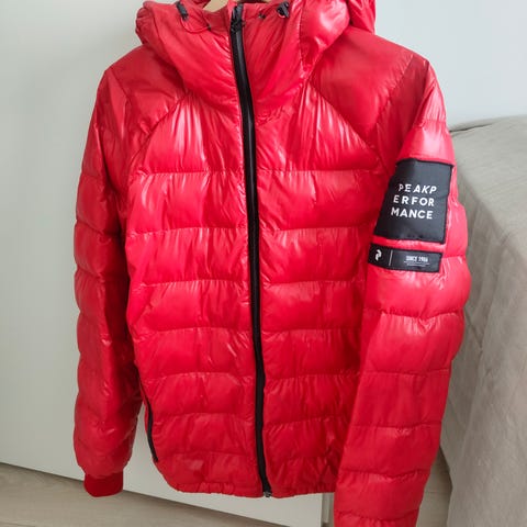 Takki on muutaman vuoden vanha, mutta Peak Performancen tuote ei tietenkään käyttöä pelkää: ei reikiä, untuvat tallessa, vetoketjut toimivat, resori ja muut kiristyskumpparit ovat kuin uudessa.