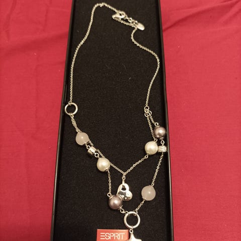 Espritin hopeinen kaulakoru kahdella helalla. Helan koko 1.4 cm x 2 cm. Ketjun pituus 43 cm. Leimat: 925, ESPRIT.