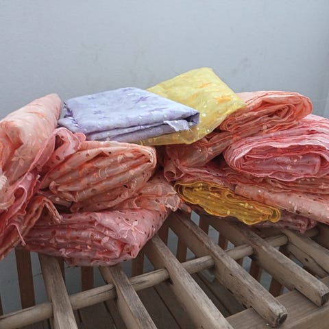 Korkealaatuinen Reimsista Ranska ostettu puuvilla/popliini kangas. Leveys 1,38 metriä.