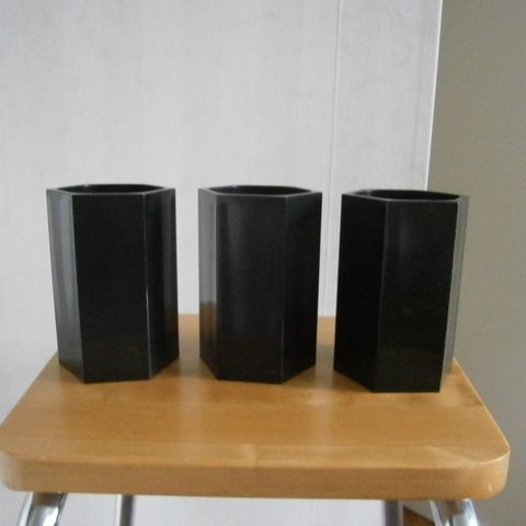 Kukkapurkki sekä pikkuinen purkki, missä lukee köks klubben, ovat kirkasta muovia.