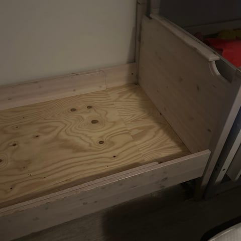 Annetaan Neulamässä kaksi lasten puista jatkettava sänkyä.