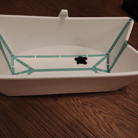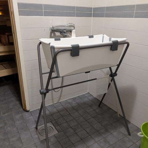 Tilaa säästävä pienten lasten kylpyamme, joka sopii vastasyntyneestä nelivuotiaaksi asti. Amme taittuu kokoon 63x24x10 cm. Pohjassa on irroitettava BPA vapaa tyhjennystulppa. Ammeen tilavuus avattuna 39 litraa. Ollut käytössä yhdellä lapsella.