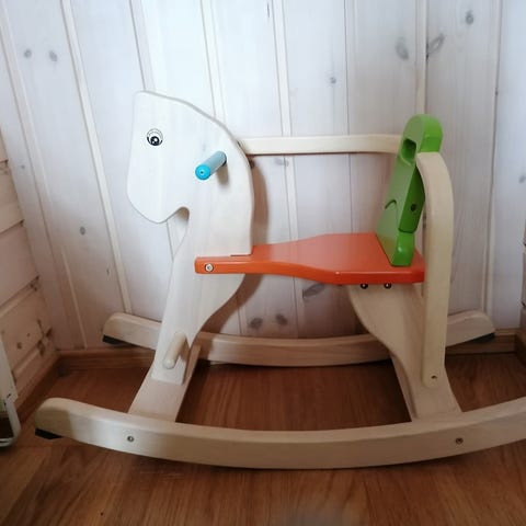 Myydään erinomaisessa kunnossa oleva Goki-merkkinen keinuhevonen, jossa on hyvin vähän käytön jälkiä (kuin uusi / harvoin käytetty). Turvakaaret voidaan irrottaa, joten se sopii vauvasta taaperoikäiseen.