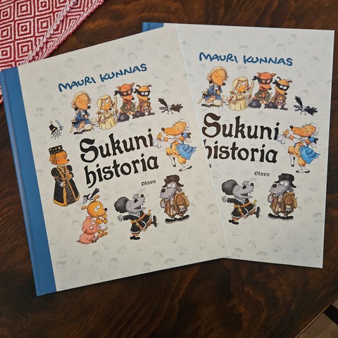 Mauri Kunnas, Sukuni historia, kirja uusi, maksu mobilebay/käteinen, Toridiili, nouto Espoo/Eestinlaakso.