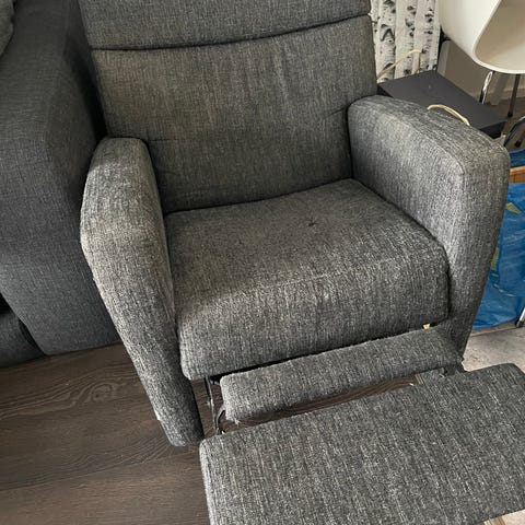 Annetaan kaksi kuvanmukaista nojatuolia. Materiaali keinonahkaa
