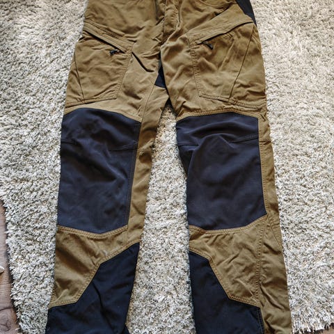 Haglöfs vaellushousut miehille, koko L. Väriltään tummanvihreät. Housuissa on vetoketjullinen tasku lahkeessa . Materiaali joustavaa.