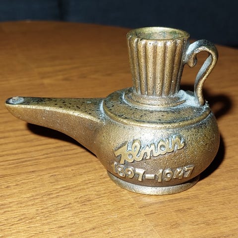 Esine on ilmeisesti intialainen diya-lamppu. Messinkiä. Lamppu on vintagea, voi olla hyvinkin vanha, en tiedä alkuperästä.