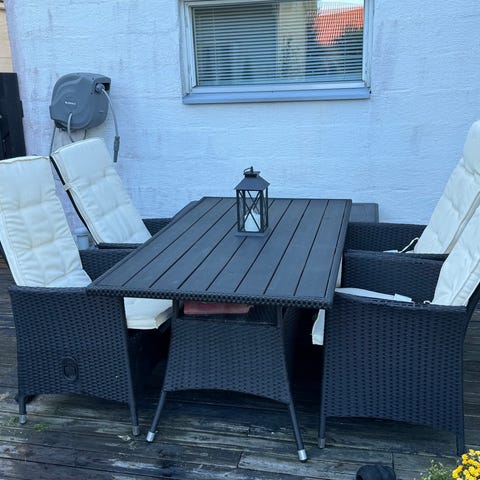Myydään tarpeettomaksi jäänyt polyrottinkinen terassikalusto, joka on ollut vähäisellä käytöllä ja hyvässä kunnossa. Tyylikäs ja ajaton kokonaisuus, sopii erinomaisesti terassille, parvekkeelle tai pihalle.