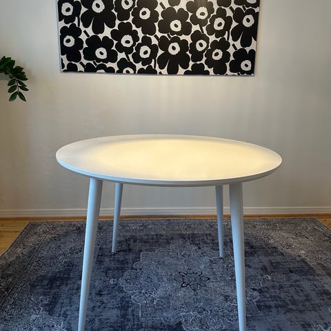 Siisti pyöreä pöytä. Halkaisija 90cm. Korkeus 48cm.